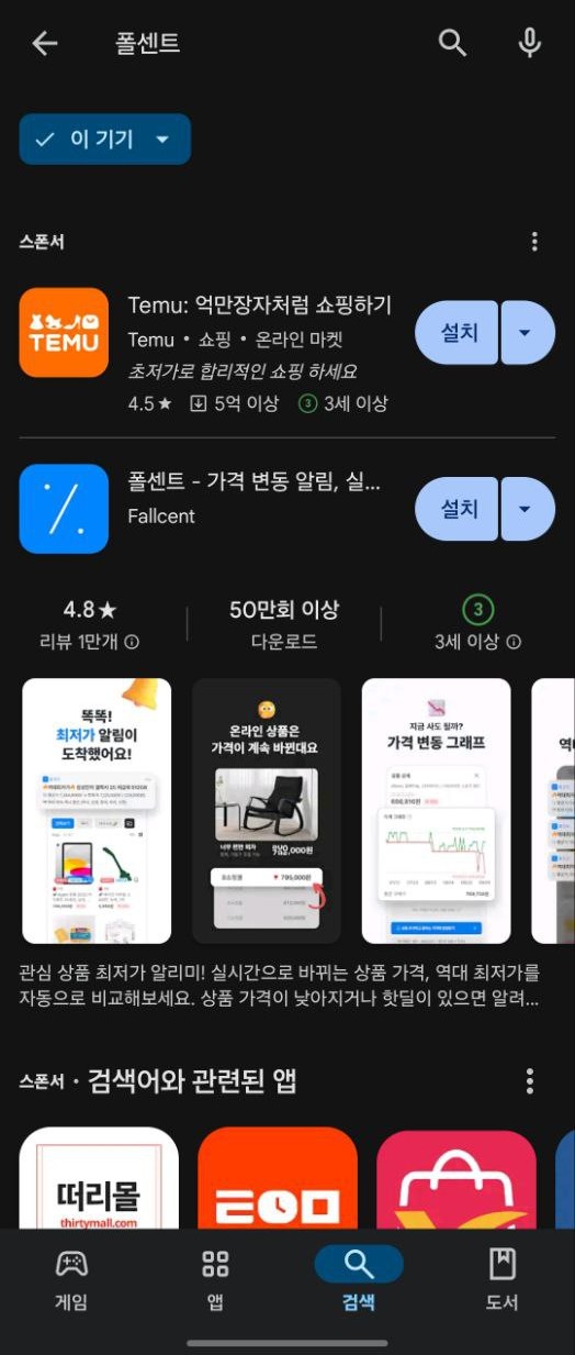 구글플레이 또는 앱스토어에서 폴센트를 검색하고 설치를 진행합니다.