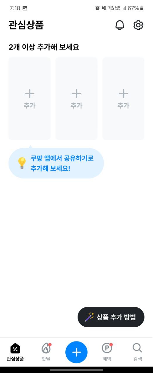 예로 휴지를 한 번 추가해보겠습니다. 추가 버튼을 눌러 쿠팡에 접속합니다.