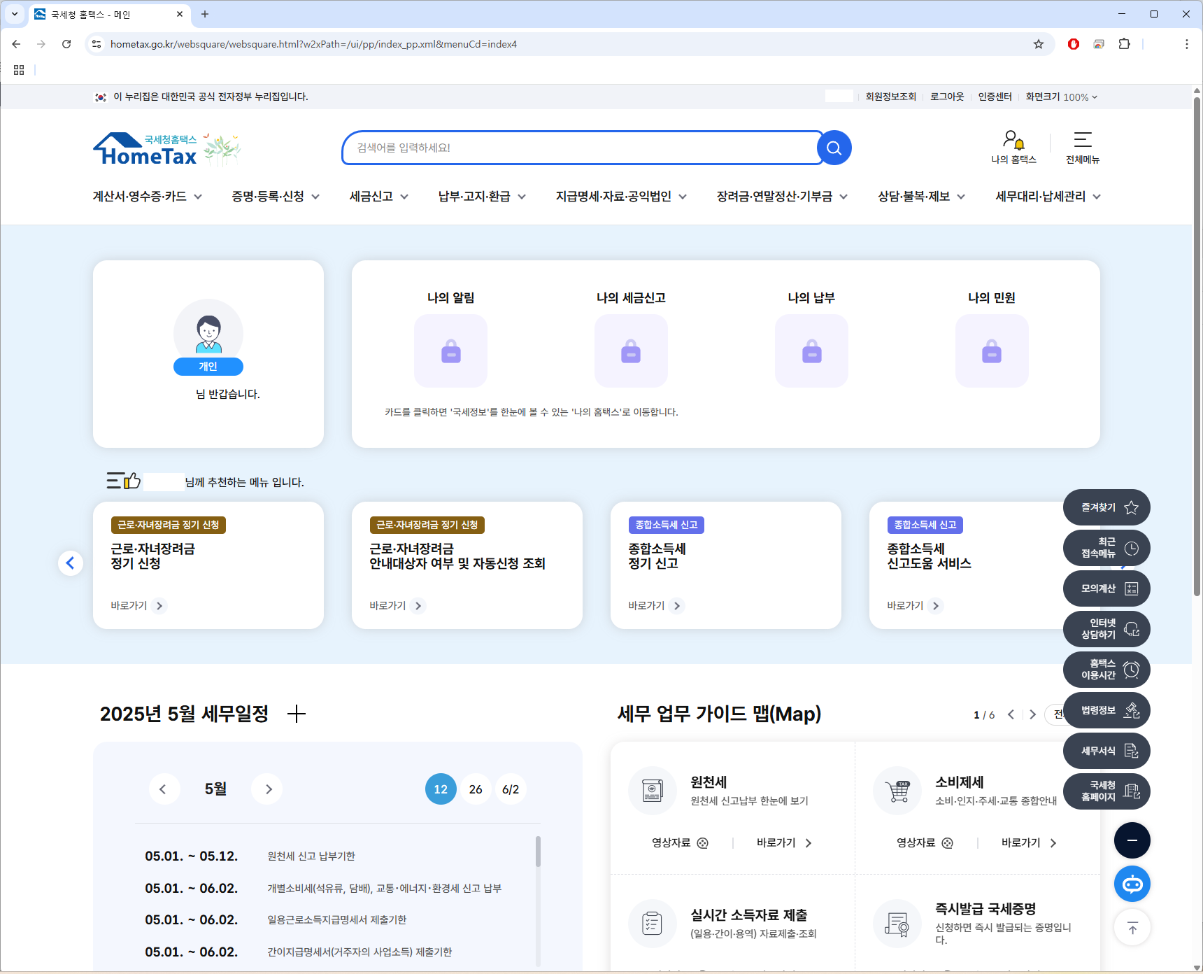 1. 홈택스 접속 후 로그인