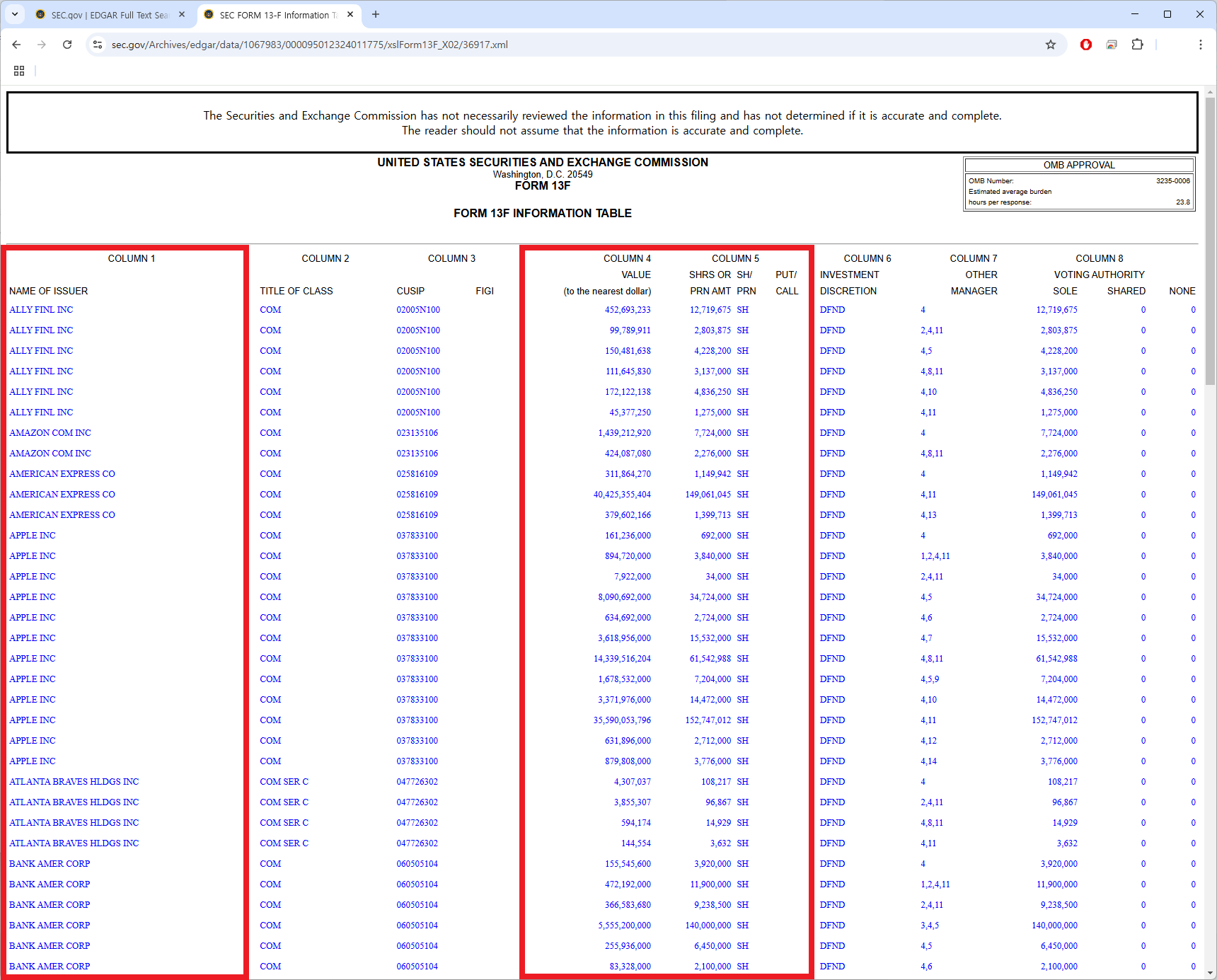 미국 증권거래위원회(SEC)에서 버크셔 해서웨이 13F 문서 확인하기